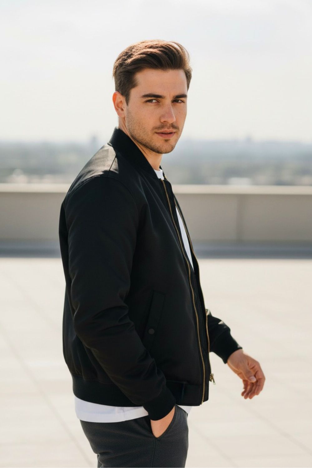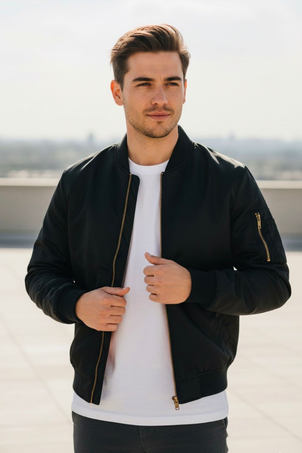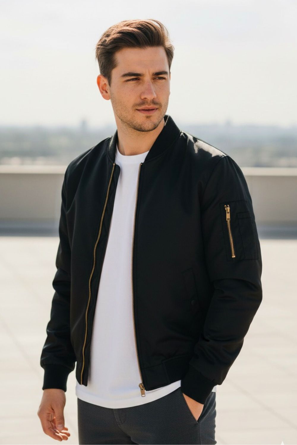 Built for the pace of the city. The classic bomber jacket moves with you - sleek, durable, and unmistakably refined.