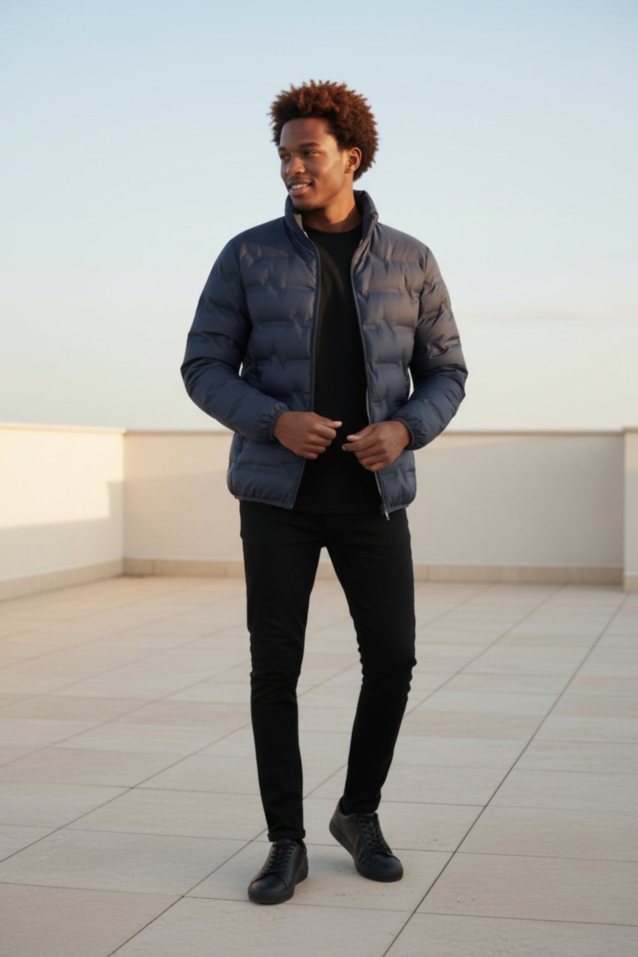 Designed for quiet confidence. The Mercer Navy Puffer combines a sleek silhouette with high-performance warmth - built for those who act with intention.