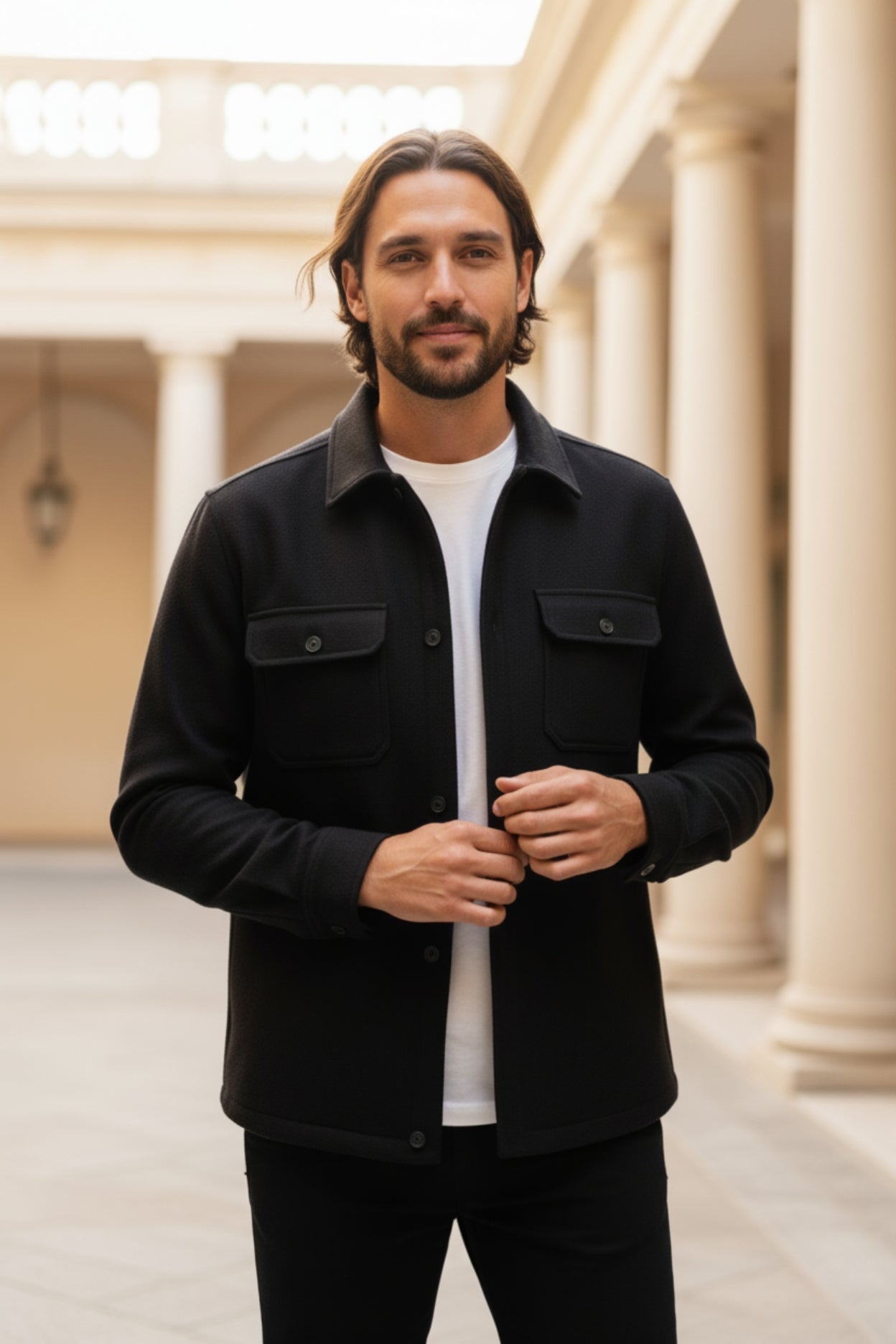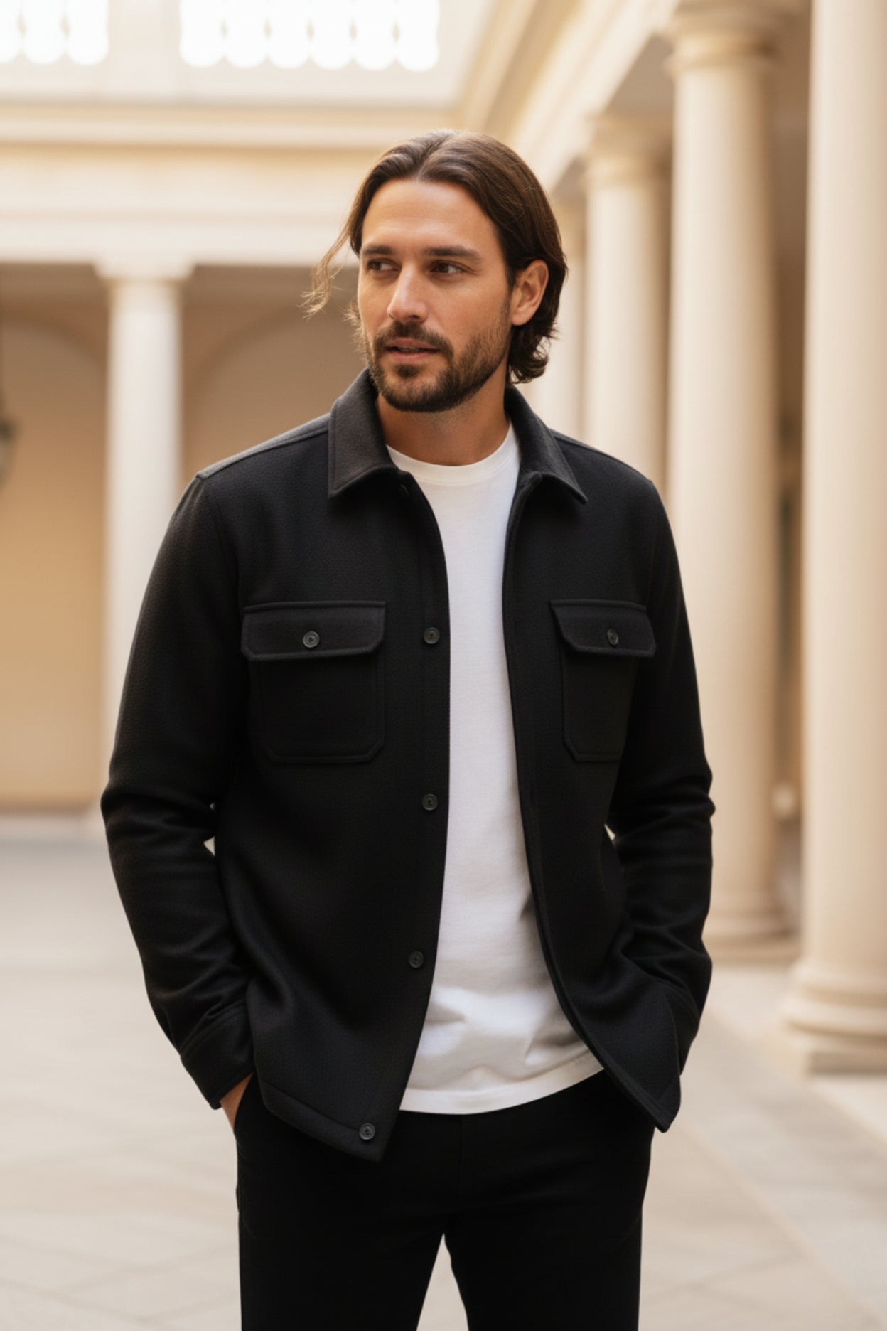 Cut through the noise with a clean, confident layer designed for city evenings, weekend getaways, and dynamic movements. The Black Overshirt exudes instant authority - minimalist, modern, unstoppable.
