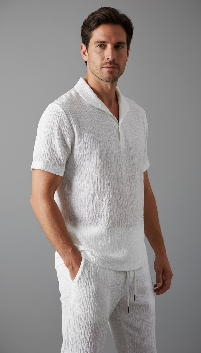 Introducing the Finley Limited Polished Navy Summer Set—a refined two-piece designed for warm days with a sense of restrained luxury. The set pairs a short-sleeve shirt in a classic cut with front buttons with relaxed-fit trousers featuring an elasticated waistband for adaptable comfort. Woven from a high-quality cotton blend, the fabric breathes easily and carries a subtle textured finish that catches the light with quiet sophistication. The navy polish and meticulous tailoring speak to provenance and considered craftsmanship, yielding a wardrobe staple that lasts beyond the season.