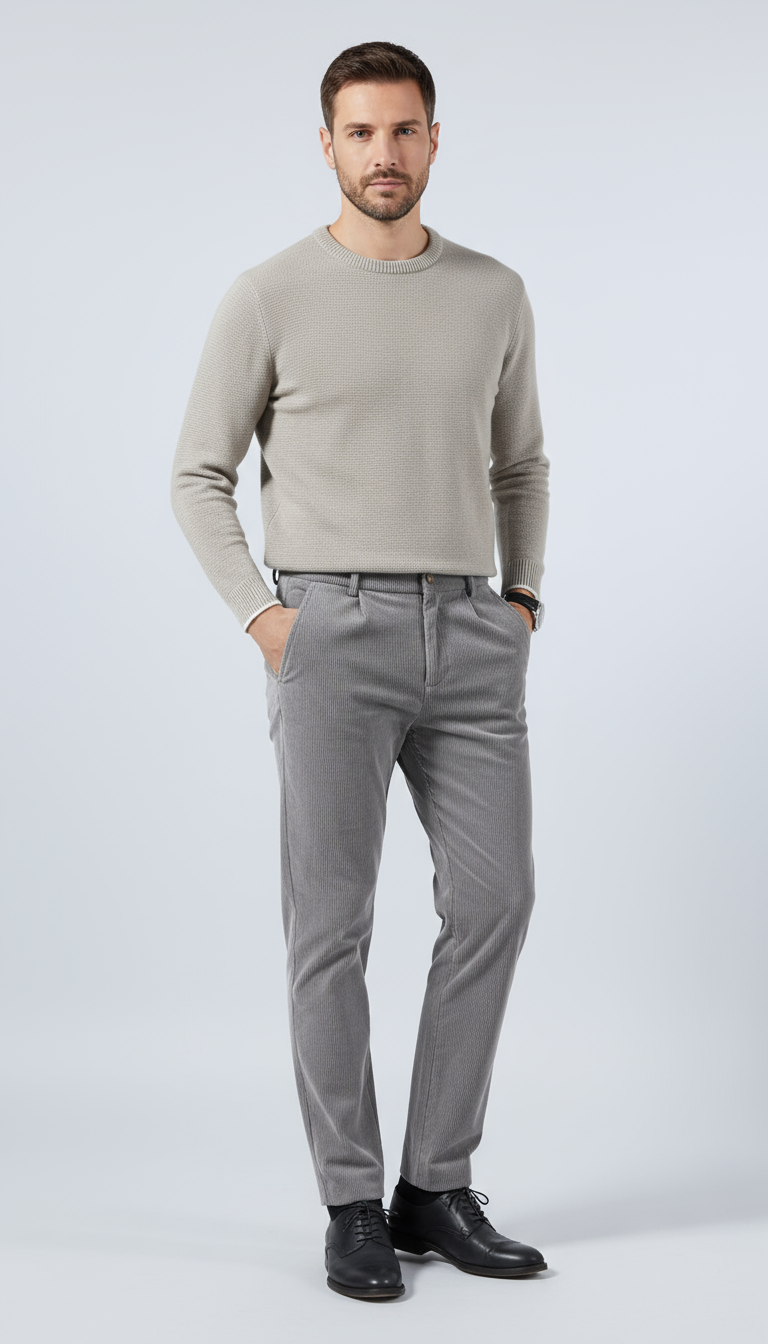 ChinoFlex Slim Fit Men's Casual Trousers Limited Edition are a refined staple for the discerning wardrobe. Woven from a thoughtful blend of cotton, polyester and elastane, they offer quiet stretch, durability and a comfortably tailored drape. The slim cut provides a contemporary silhouette while preserving ease of movement for daily life. Crafted with attention to detail, from reinforced seams to a clean finish at the waistband and hem, these trousers are designed to endure, season after season. Offered in neutral tones of light grey, dark grey, navy and beige, they age gracefully and retain their shape, making them a perennial choice.