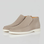 Men's Suede Loafer Boots – Slip-On Chukka Style, Flat Heel – Greige