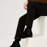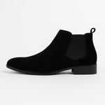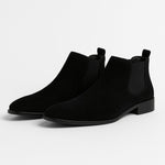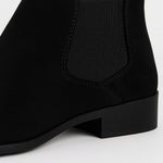Minimalist Slip-On Chelsea Boots – Black Suede Look, Elastic Side Panels, Flat Heel