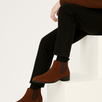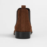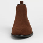 Minimalist Slip-On Chelsea Boots – Brown Suede-Look, Elastic Side Panels, Flat Heel
